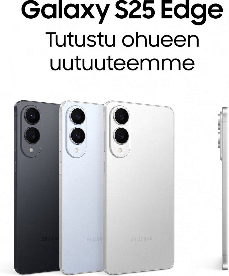Samsung Galaxy S25 Edge on älypuhelin, joka yhdistää huipputeknologian ja tyylikkään muotoilun. Sen ohut rakenne, vain 5,8 mm ja 163 grammaa, tekee siitä mukautuvan ja helposti käsiteltävän. Titaanirunko ja kestävä Gorilla® Glass -lasitus tarjoavat lisäsuojaa, ja IP68-luokitus takaa, että puhelin kestää sekä vettä että pölyä. Tämä malli on varustettu huipputason 200 MP kameralla, joka hyödyntää tekoälyä kuvien optimointiin, sekä tehokkaalla 3nm Qualcomm Snapdragon 8 Elite -prosessorilla, joka takaa sujuvan käyttökokemuksen. Näytön 120 Hz:n virkistystaajuus ja upea värintoisto tekevät siitä täydellisen viihteen nauttimiseen.