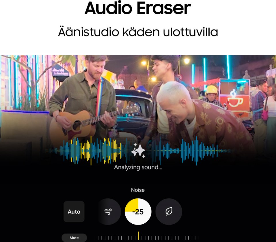 Tee nopea luonnos, ja hetkessä sinulla on AI:n luoma kuva. Onko videossasi häiritsevää ääntä? Se katoaa silmänräpäyksessä – samalla kun muu ääni säilyy. ProVisual Engine -kameralla saat automaattisesti optimaalisen kuvan, ja AI:n tukemalla Pro Color Gradingilla ja editoinnilla voit antaa sille oman ainutlaatuisen valokuvaidentiteettisi. Voit myös pyytää, että valokuva tai video muistuttaa aiemmin luomaasi materiaalia galleriassasi tai ottaa inspiraatiota muista kuvista verkossa ja sosiaalisessa mediassa. Uutuutena voit myös kuvata pimeässä upein tuloksin Night Videon ansiosta. Galaxy AI:n avulla selfiet ovat juuri sellaisia kuin haluat – ja kaikilla ryhmäkuvassa on silmät auki. Kuin taikuutta!