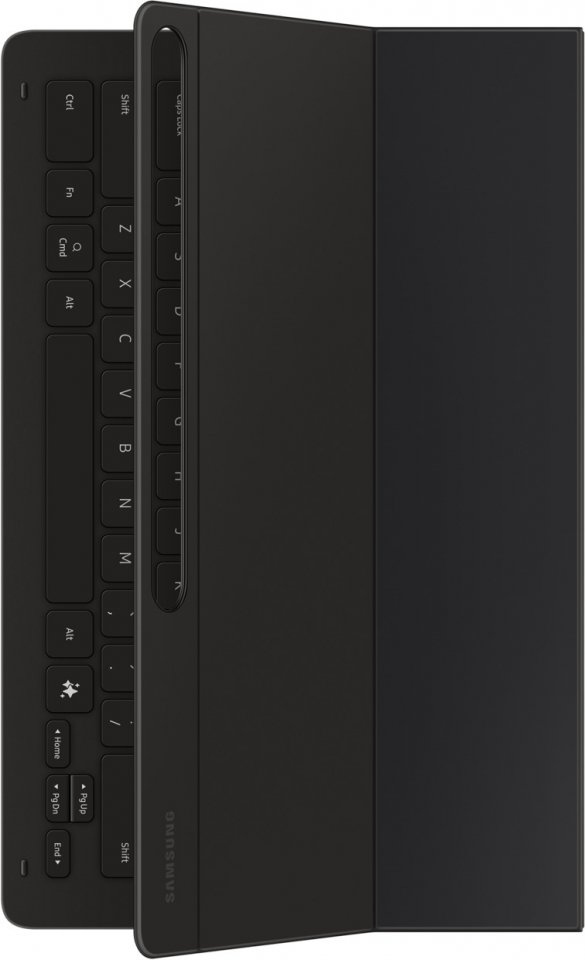 Book Cover Keyboard Slim -kotelo korostaa tabletin virtaviivaista ulkoasua kevyellä ja ohuella rakenteellaan. Se on helppo kiinnittää paikalleen kuin kirjan kansi, ja magneetit pitävät sen tukevasti paikoillaan. Kotelossa on myös kätevä lokero S Pen -kynälle.