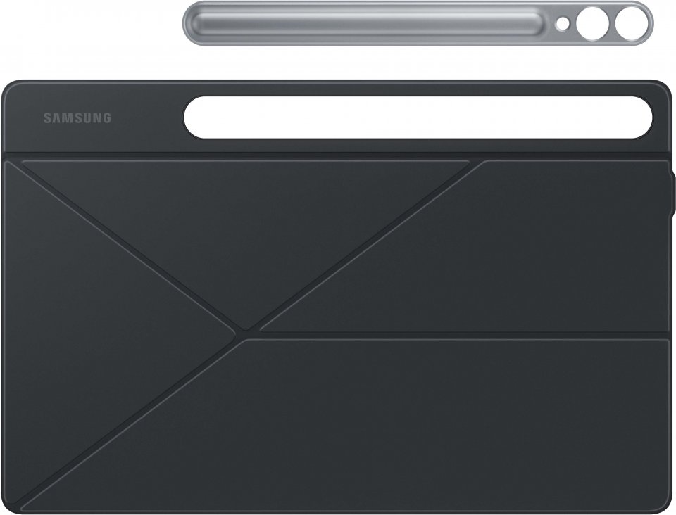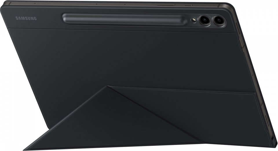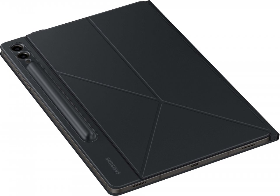 Samsung Galaxy Tab S9-sarjan Smart Book Cover -suojakotelo. Kanna laitettasi tyylillä ja turvallisesti. Ohut ja monipuolinen suojakotelo jonka pystyy asettelemaan useaan katselukulmaan. Pidä S-Pen tallessa ja käyttövalmiina suojakotelon takana olevan luukun takana.