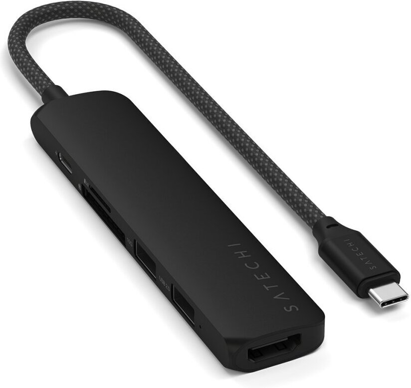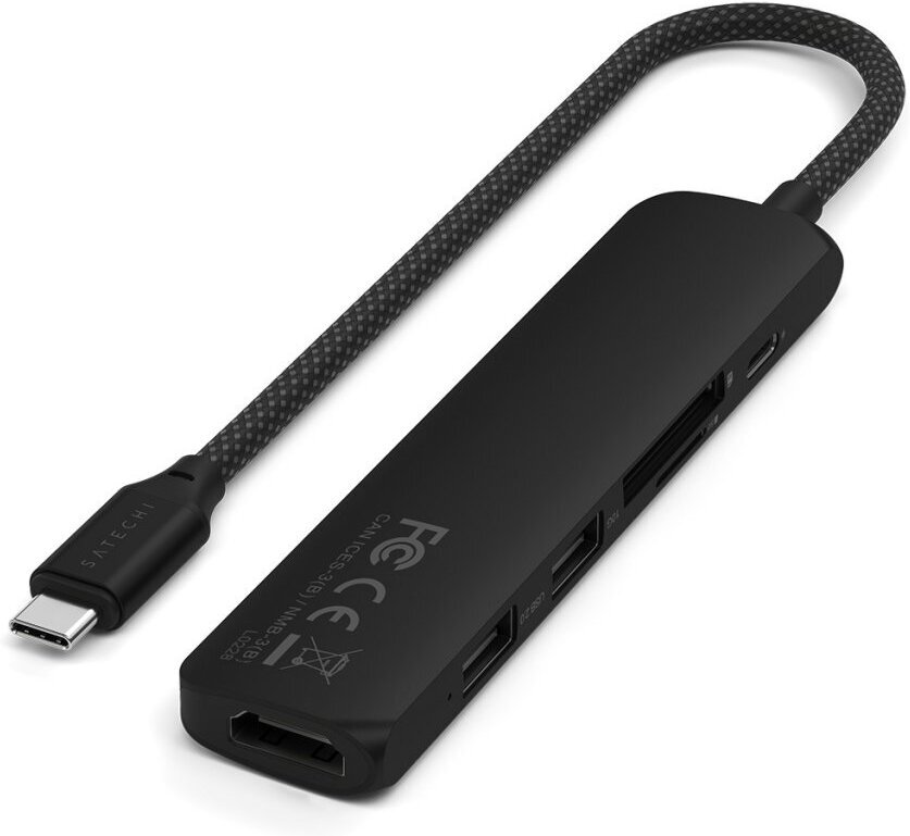 Satechi 6-in-1 USB-C Slim Multiport adapteri, musta