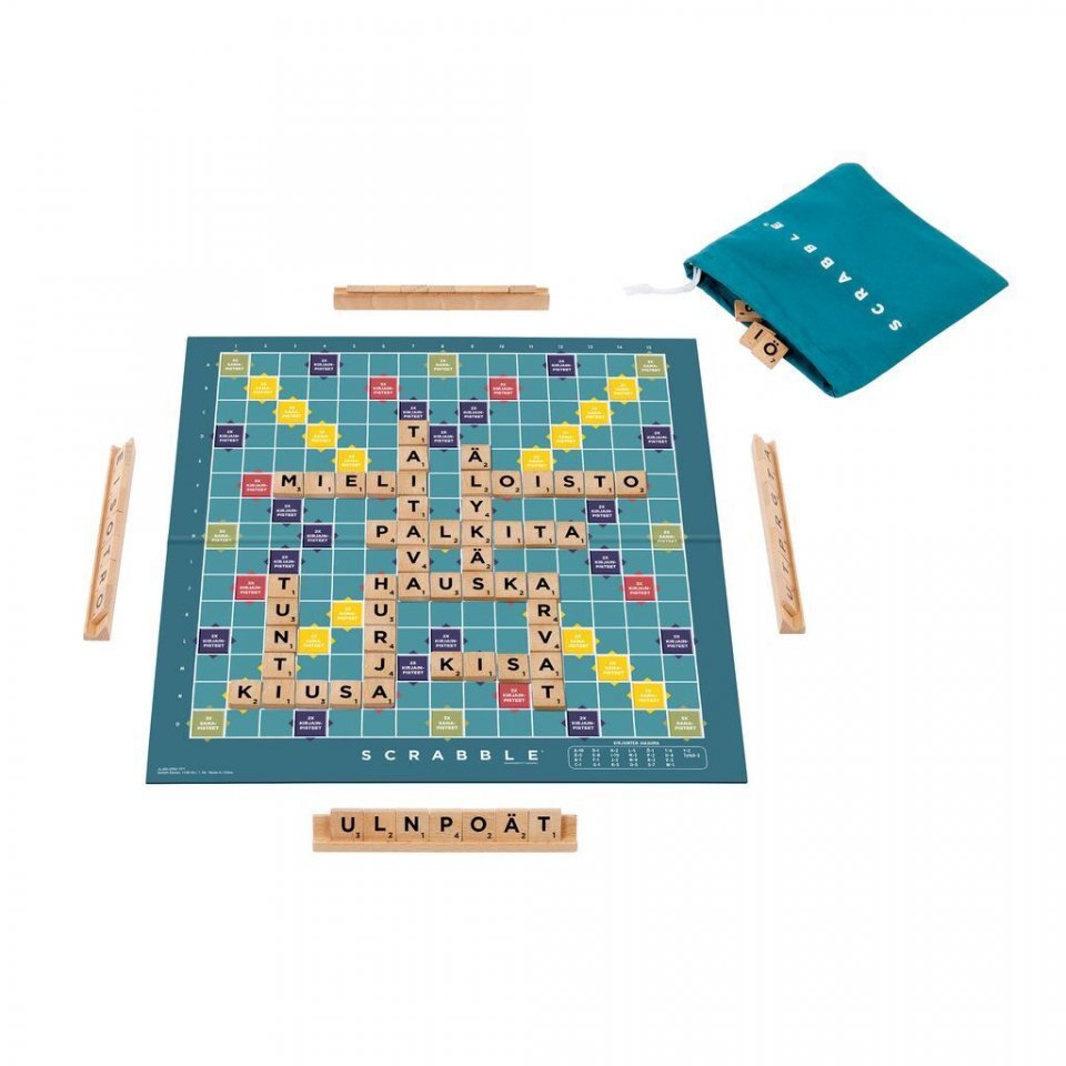Suosikkipeli Scrabblessa on nykyään kaksi eri peliä sekä uudet puiset kirjainlaatat ja -telineet. Kaksipuolisen pelilaudan toisella puolella on perinteinen sanapeli ja toisella puolella hauska joukkuepeli! Mukavaa ajanvietettä koko perheen kesken tai illanviettoon ystävien kanssa. Peli on suunniteltu 2 – 4 pelaajalle.