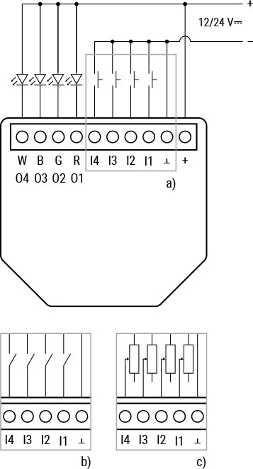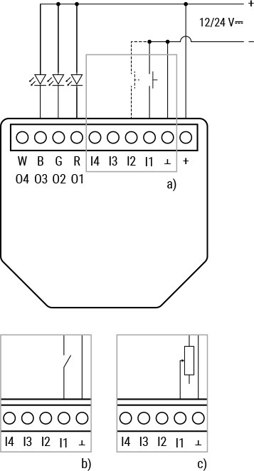 • Tukee 12 V tai 24 V DC valkoisia (tai värillisiä), RGB-, RGBW-LED-nauhoja
