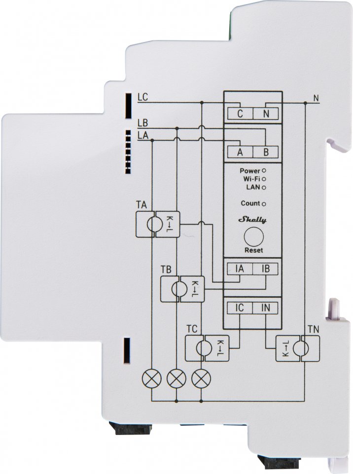 Shelly Pro 3EM DIN-kisko energiamittari, 3-vaiheinen