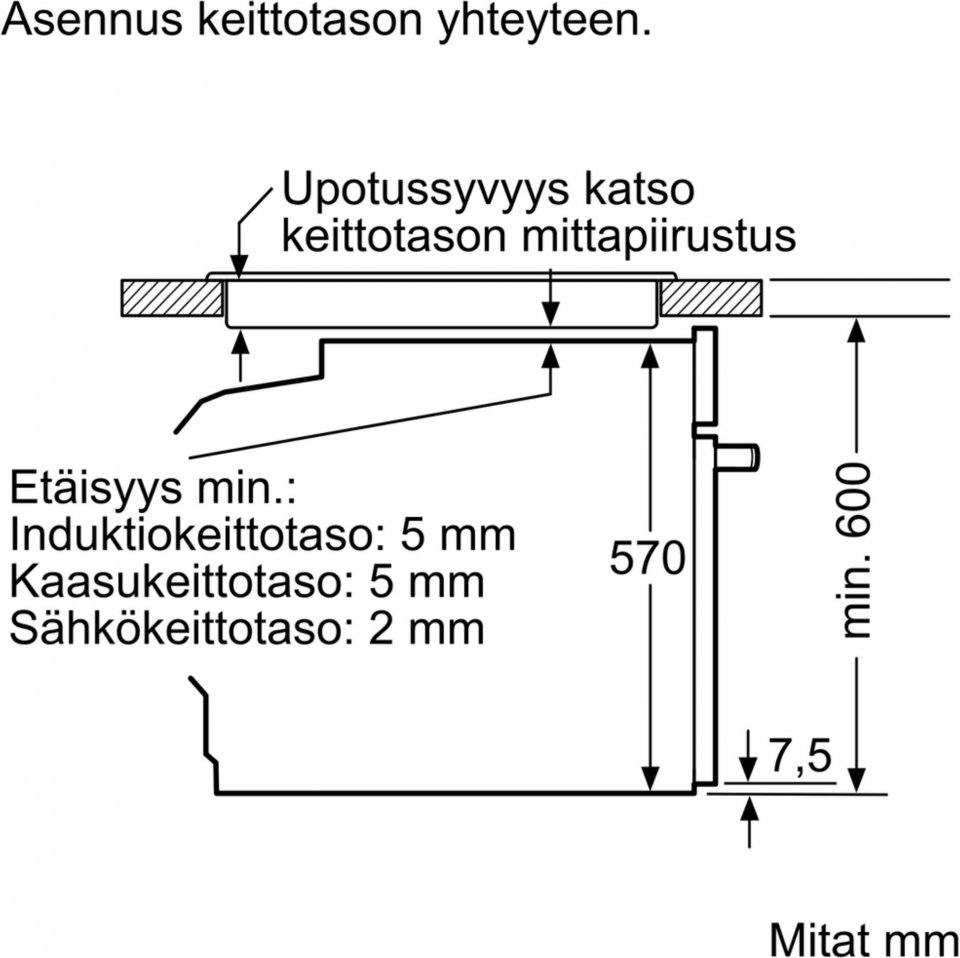• Asennuspaikan mitat (mm): 585-595 x 560-568 x 550