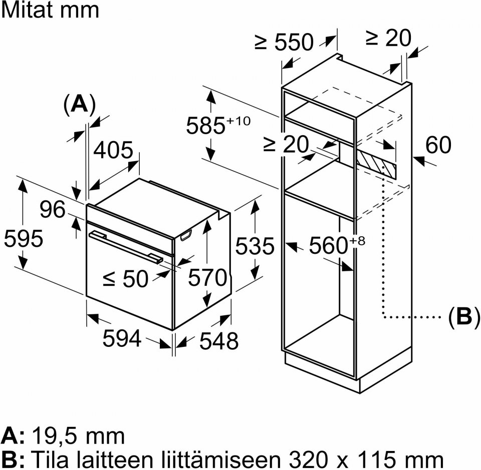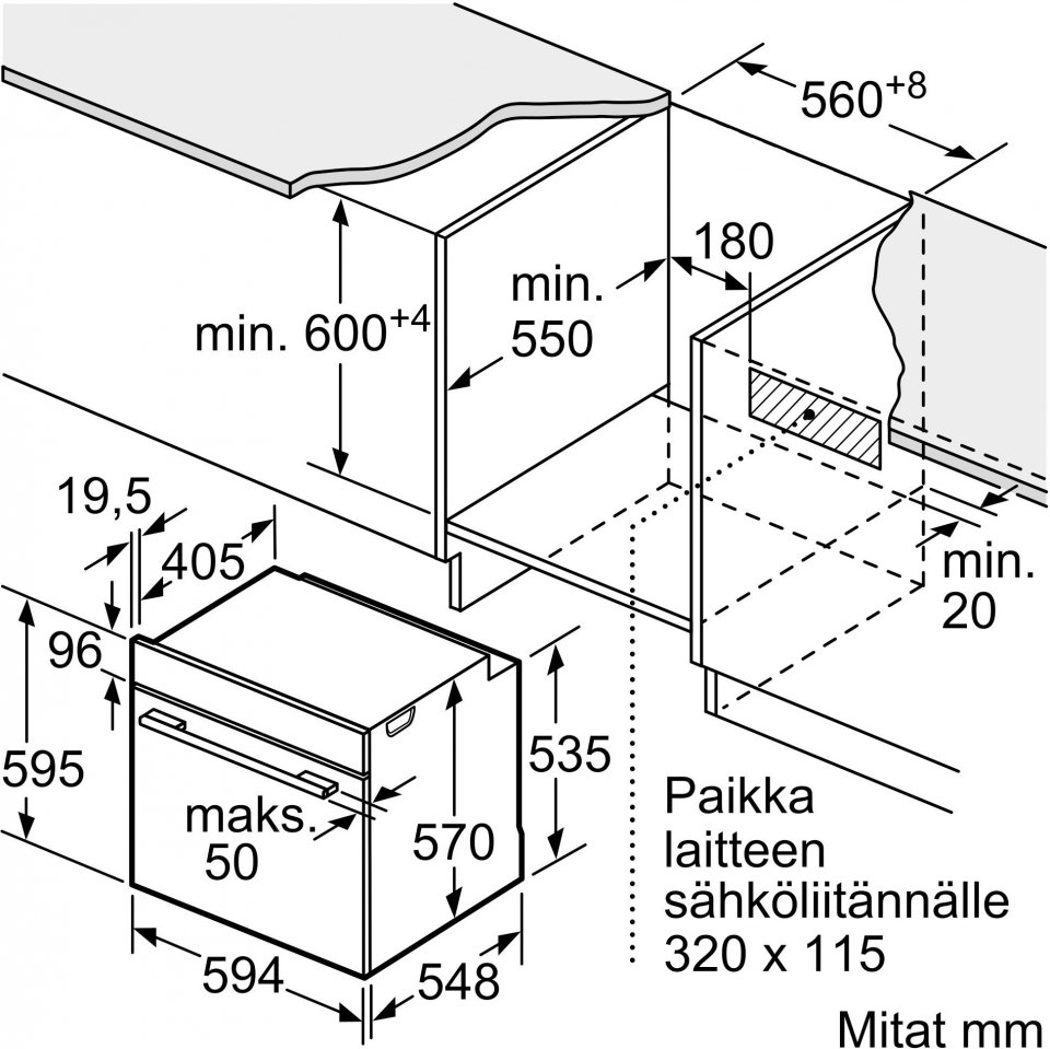 • Asennuspaikan mitat (mm): 585-595 x 560-568 x 550