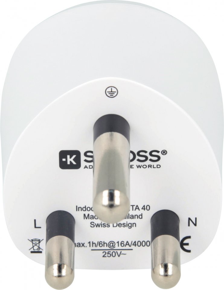 Kestävä, pienikokoinen ja turvallinen matka-adapteri jolla käytät suomalaisella pistokkeella varustettuja laitteita Etelä-Afrikan standardipistorasioissa, joita käytetään 15 maassa ympäri maailmaa. Yhteensopiva kaikkien laitteiden kanssa jotka käyvät tavalliseen suomalaiseen maadoitettuun pistorasiaan.