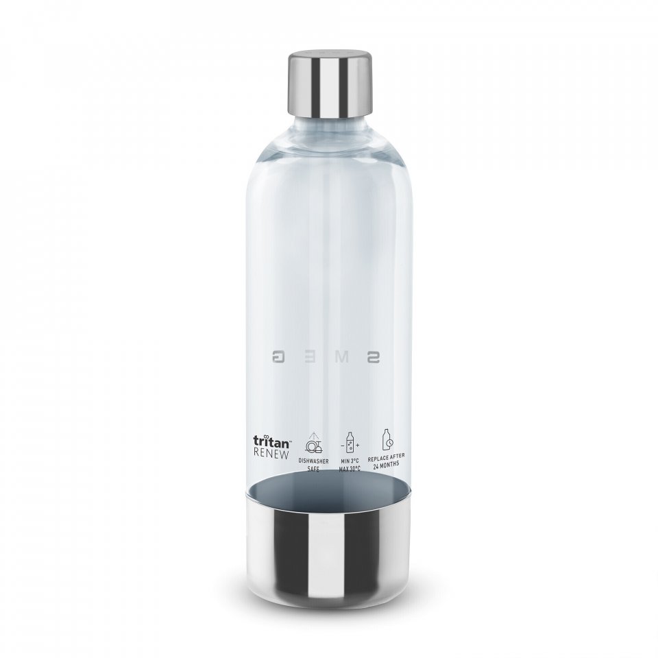 Smeg SKSB01 on hiilihapotuslaitteen lisäpullo, joka on yhteensopiva hiilihapotuslaitteelle SKC01. Pullo on valmistettu Tritan Renew -materiaalista ja se on BPA-vapaa, erittäin kestävä käytössä ja se on myös astianpesukoneen kestävä. Pullon tilavuus on 1 l ja täyttötilavuus on 800 ml.