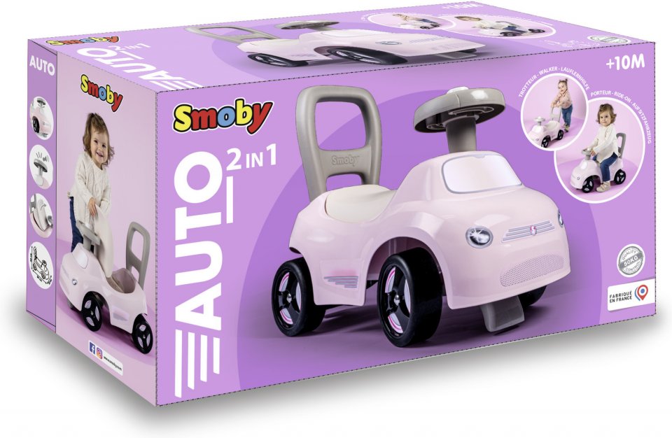 Smoby Auto 2in1 potkuauto, vaaleanpunainen