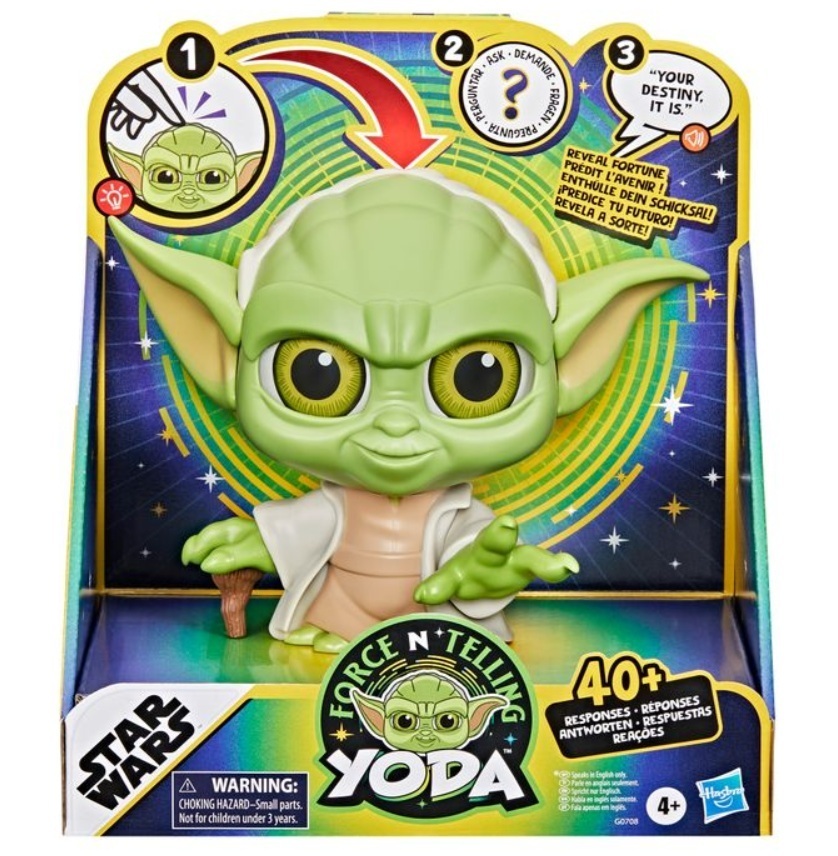 Vastustava YoDa annab üle 40 erineva vastuse ja süttib silmadest. Sa saad ka käsitsi YoDa kulmude ja näoavalduste reguleerida ning naljakaid väljendusviise luua. Ennustav YoDa figuur on suurepärane kingiidee kõikidele Star Warsi fännidele, lastele ja täiskasvanutele, ning lõbus meelelahutus terve pere mänguõhtuks.