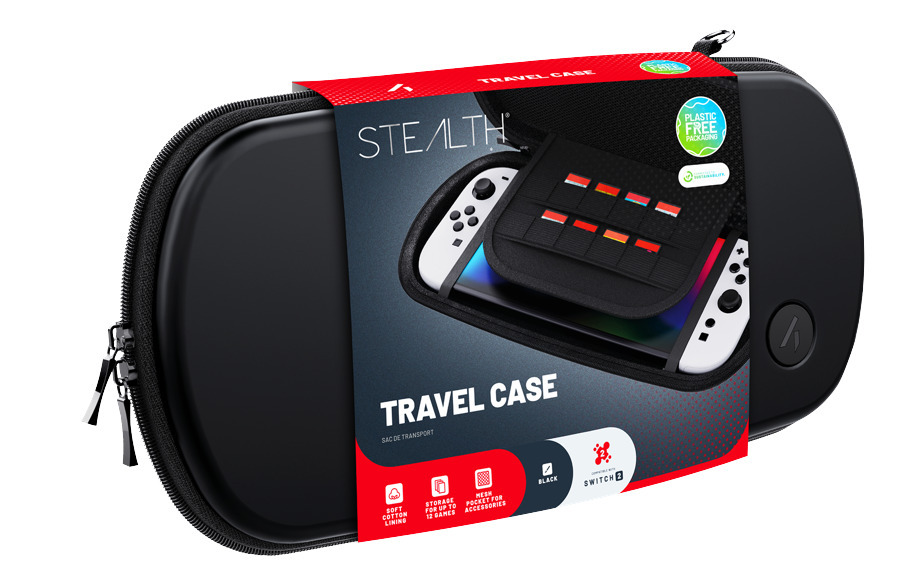 Stealth Travel Case matkakotelo on suojakotelo Nintendo Switch 2 -pelikonsolille. Se on suunniteltu suojaamaan konsolia matkalla kovakuorisella rakenteella ja pehmeällä, puuvillisella sisäpinnalla, joka estää naarmuuntumista.