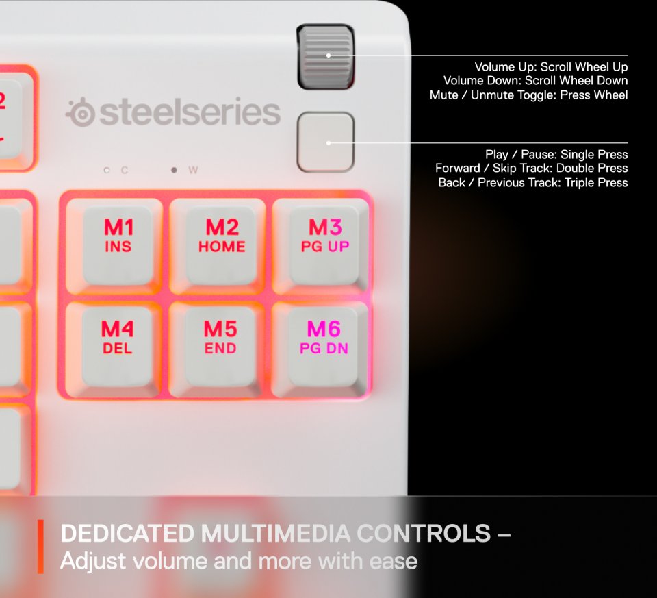 SteelSeries Apex 3 TKL on ensimmäinen vedenkestävä tenkeyless-pelinäppäimistö, jossa on kaikki vakavasti otettavan esports-näppäimistön ominaisuudet kompaktista ja virtaviivaisesta muotoilusta mekaanisilta tuntuviin hiirenhiljaisiin kytkimiin, jotka on suunniteltu kestämään yli 20 miljoonaa painallusta sekä täyteen Anti-Ghostingiin ja upeaan kahdeksan valaistusalueen RGB-valaistukseen. Vesi- ja pölytiivis näppäimistö kestää hikiset tilanteet ja läikkyvät nesteet. Kuten kalliimpien hintaluokkien SteelSeries -näppäimistöt, myös Apex 3 TKL on varustettu näppärillä mediapainikkeilla, klikattavalla, metallisella vierityspyörällä ja kätevillä kaapeliurilla näppäimistön pohjassa. Nyt saatavilla valkoisena!
