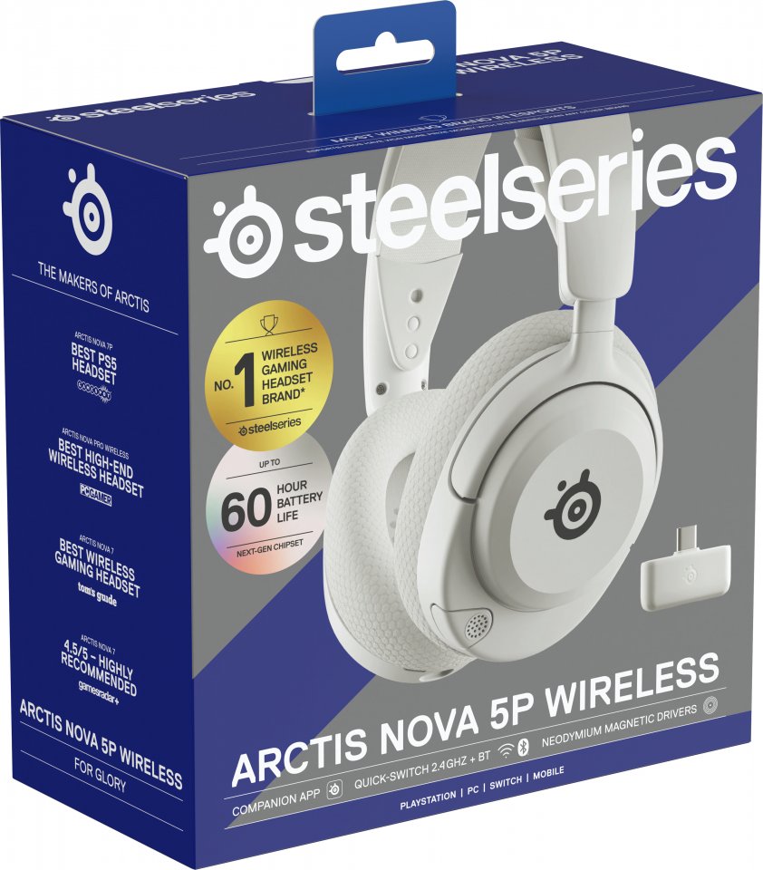 SteelSeries Arctis Nova 5P langattomat pelikuulokkeet, valkoinen