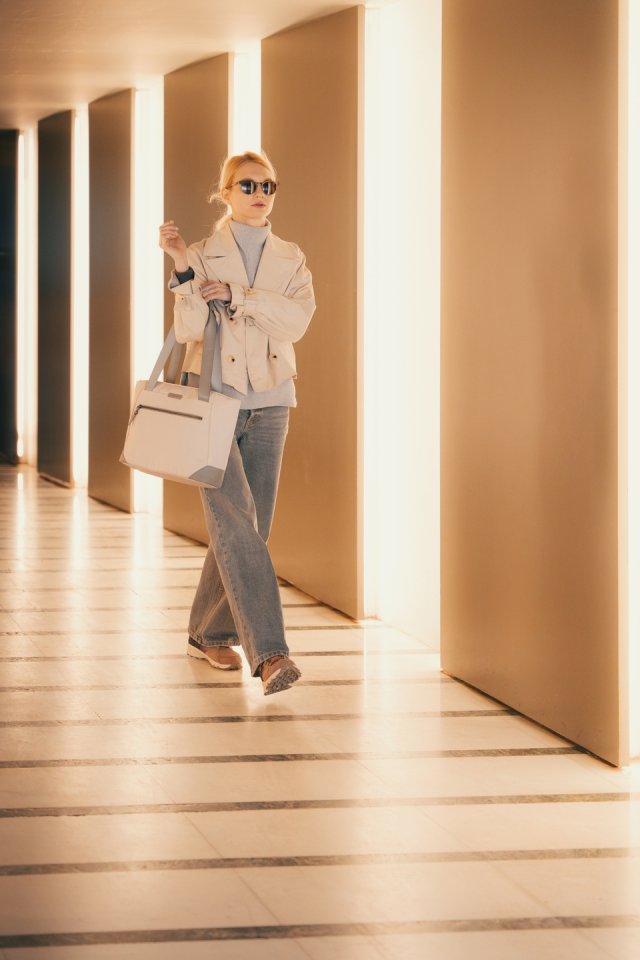 Avila Tote ei ole vain käytännöllinen, vaan myös silmää miellyttävä. Tyylikäs vaalean beige pinta ja keinonahkaiset yksityiskohdat antavat laukulle hillityn mutta tyylikkään ilmeen. Kirkas sisävuori helpottaa tavaroiden löytämistä, ja pehmeät olkaimet mahdollistavat mukavan kantamisen monella tavalla – kädessä, olalla tai käsivarrella. Lisäksi laukun voi kiinnittää matkalaukun vetoaisaan, mikä tekee matkustamisesta sujuvampaa.