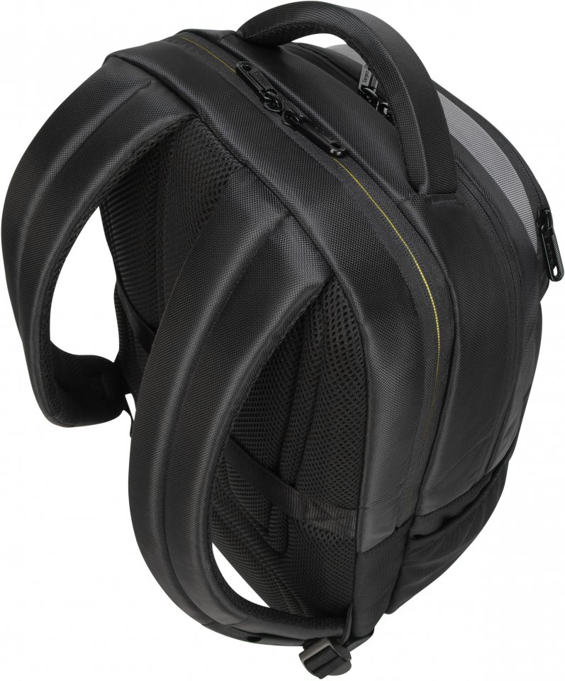 Targus City Gear 12-14″ -tietokonereppu soveltuu erinomaisesti kompaktia ja monipuolista reppua hakevalle. Reppu on varustettu lukuisilla taskuilla, jotka helpottavat tarvikkeiden organisointia. Portaattomasti säädettävät ja pehmustetut olkahihnat takaavat miellyttävän käyttökokemuksen. Pehmustettu kantokahva helpoittaa repun siirtelyä. Erillinen tietokoneosio, joka on sijoitettu lähelle selkää oikean painojakauman aikaan saamiseksi. Tietokoneosio on varustettu myös Dome-suojauksella, joka jakaa tietokoneeseen kohdistuvaa painoa. Lisäksi Multi-Fit tietokonetasku pitää huolen, että erikokoiset laitteet pysyvät tiukasti paikallaan. Erillinen osio esimerkiksi vaihtovaatteille, tai kokouskansioille. Neljä ulkopuolella olevaa vetoketjullista tarviketaskua. Suurempi tarviketasku sisältää verkkotaskun, avainlenkin ja useita pienempiä taskuja hiirelle, laturille, jne. Pienempi etutasku soveltuu erinomaisesti johdoille ja nappikuulokkeille. Lisäksi pehmustettu tasku esimerkiksi aurinkolaseille tai puhelimelle. Repun oikealta puolelta löytyy vielä yksi tarviketasku ja vasemmalta verkkotasku, joka soveltuu vesipulloille. Repun pehmustetusta selkämyksestä löytyy kiinnitysremmi matkalaukun aisaa varten. Targus laukut on varustettu rajoitetulla elinikäisellä takuulla