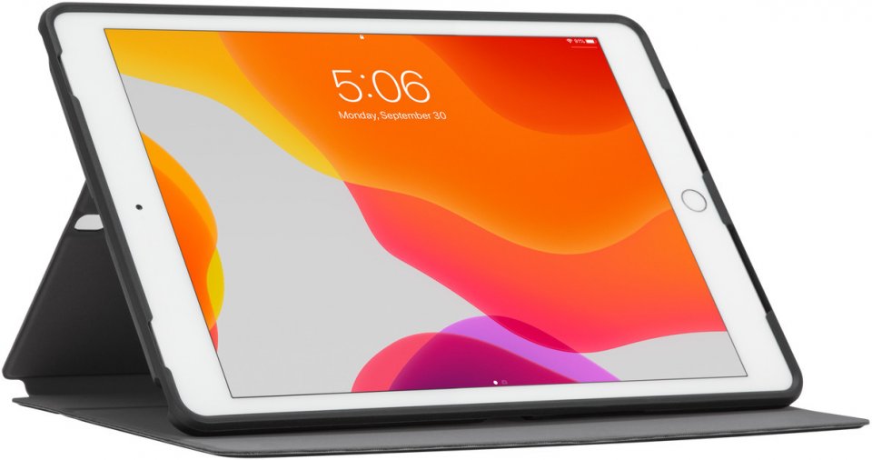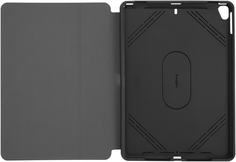 Targus Click-in -suojakotelo Apple iPad 10.2" ja 10.5” tableteille. Siinä on iskuja vaimentava alusta, joka kiinnittyy turvallisesti tabletin ympärille suojaten sen etu- ja takaosaa ja sivuja kolhuilta, putoamisilta ja naarmuilta. Patentoitu alusta varmistaa pääsyn kaikkiin tabletin portteihin ja kameraan. Etukannessa on automaattinen käynnistys/lepotilatoiminto ja pehmeä sisäpuoli, joka suojaa näyttöä ja muuntuu telineeksi. Targuksen tablet-koteloilla on rajoitettu elinikäinen vaihtotakuu.