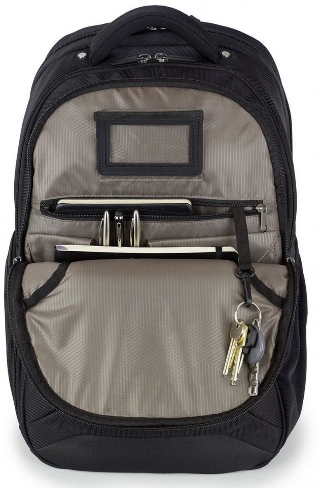 Kovaan käyttöön tehty laadukas selkäreppu kannettavaa tietokonetta varten. Tavarat pysyvät järjestyksessä useiden taskujen ansiosta: kansioita, kirjoja ja varusteita. Suojaa kannettavaa tietokonetta tehokkaasti patentoidun iskuja vaimentavan SAFEPORT™ Air Protection -lokeron ansiosta. Sotilaskäytön vaatimukset täyttävä nailonpinta kestää liikematkustamisen rasitukset. Valettu kahva varmistaa kantomukavuuden. Joustavat olkahihnat saavat painon jakautumaan olkapäille tasaisesti.
