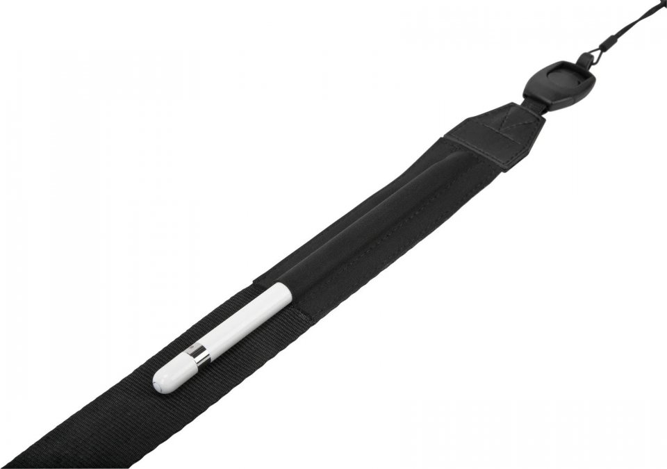 Kiinnitä tämä olkahihna Targus -tablettikoteloosi ja vie se olkapääsi yli ja voit vapauttaa kätesi. Olkahihna kiinnittyy Targus-tablettikotelon molemmille puolille ja irtoaa helposti kahdella pikaliittimellä. Se on erittäin mukava olkapäälläsi, ja siinä on pehmeä pehmuste. Hihnassa on liukumatonta silikonia olkapääsi kohdalla, jotta se pysyy paikallaan. Pidä Apple Pencil -kynä tai stylus-kynä pienessä taskussa kätevyyden vuoksi.