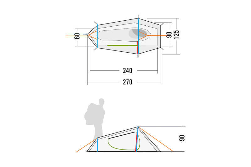 Teltta on varustettu ultra light -kaarilla, joiden halkaisija on 8,6 mm. Heijastavat, pitkät telttanarut parantavat näkyvyyttä pimeässä. Sisäteltassa on myös pyykkinaru, joka lisää käyttömukavuutta.