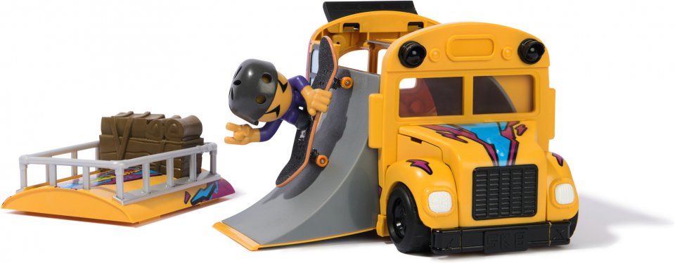 Skannaa QR-koodi video-opetusohjelmia varten, jotta voit tutkia suosikkiliikkeitäsi. Bussi toimii myös säilytystilana hahmolle ja tarvikkeille. Skeittibussin voi myös helposti ottaa matkalle mukaan tai luokaa upeita skeittihetkiä yhdessä ystäviesi kanssa.