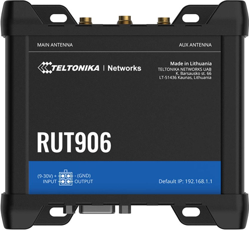 RUT906 on monipuolinen kahden liittymän eli kahden SIM-kortin LTE 4G-reititin, jossa on myös I/O-liitäntöjä, GNSS-paikannus, langallinen Ethernet-WAN -liitäntä, kolme LAN-liitäntää ja WiFi. Koska reitittimen käyttöjännite on 9-30 V DC, se soveltuu hyvin myös ajoneuvokäyttöön.