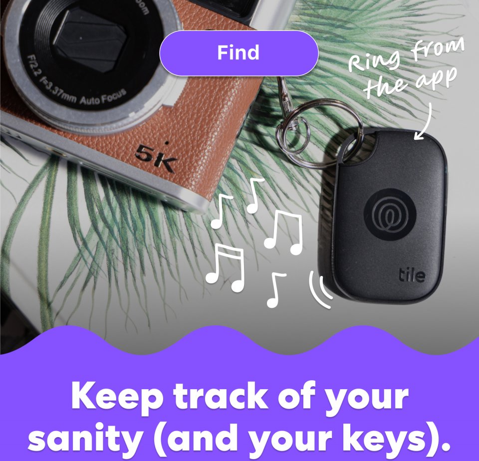 Liitä Tile Pro -paikannin helposti autonavaimiin, kameravarusteisiin, reppuihin ja urheiluvälineisiin – Ilman ylimääräisiä lisävarusteita.