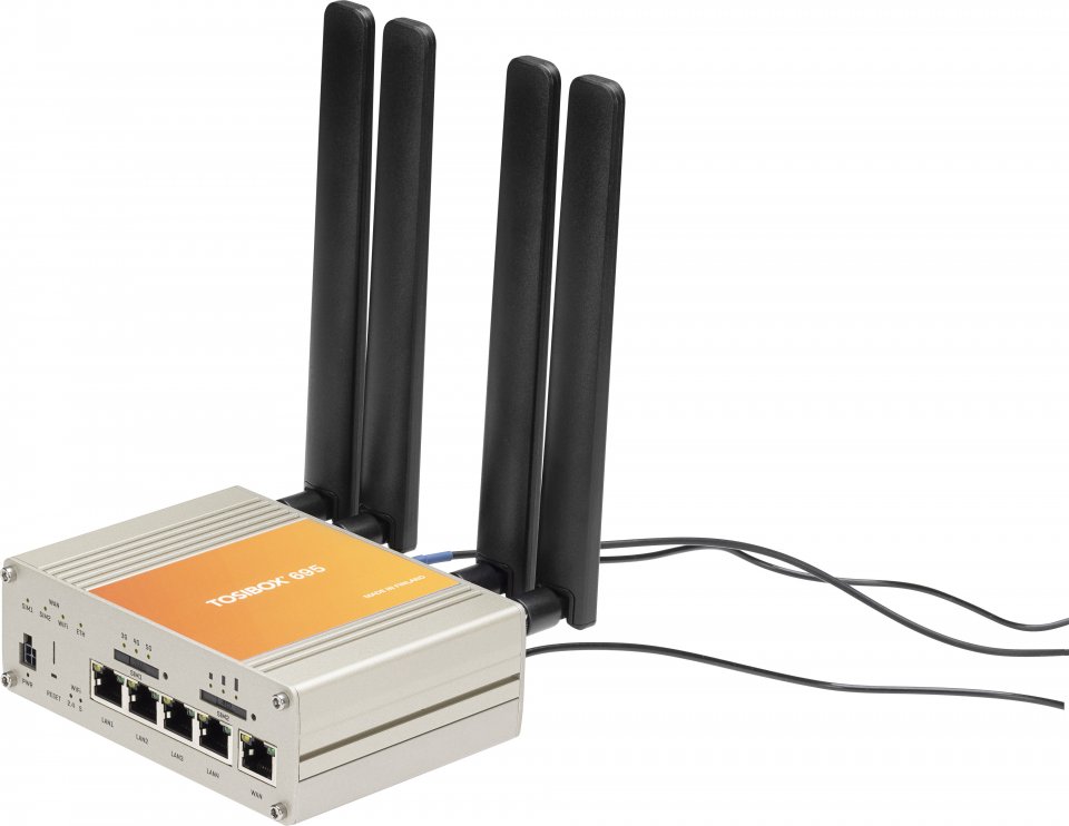 TOSIBOX® 695 on kompakti ja monipuolinen ratkaisu, joka sopii mihin tahansa teollisuuteen. Kiinteän Gigabit ethernet-liitännän, nopean WiFin tai sisäisen Dual-SIM 5G/LTE-moduulin avulla voit nauttia vakaasta etäkäytöstä missä tahansa maailmassa. Ei tarvita teknistä asiantuntemusta – vain liitä ja käytä!