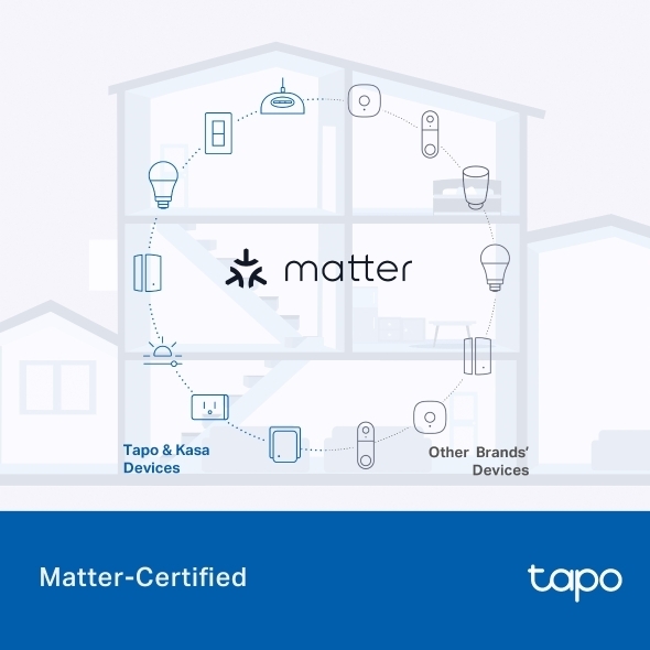 Tapo P410M on Matter-sertifioitu, mikä tarkoittaa, että se toimii saumattomasti muiden Matter-yhteensopivien laitteiden kanssa. Voit liittää sen osaksi omaa älykotijärjestelmääsi ja hallita laitteita yhdestä paikasta. Ääniohjauksen ansiosta pistorasian käyttö on vaivatonta ilman puhelinta.