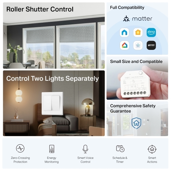 TP-Link Tapo S112 on monipuolinen älykytkin, joka sopii erityisesti rullaverhojen ohjaukseen ja kahden eri valaisimen erilliseen hallintaan. Sen avulla voit ajastaa laitteiden toimintaa, seurata energiankulutusta ja ohjata laitteita etänä Tapo-sovelluksen kautta. Pieni koko mahdollistaa asennuksen ahtaisiinkin paikkoihin, kuten pistorasioiden taakse tai valokatkaisijoiden läheisyyteen.