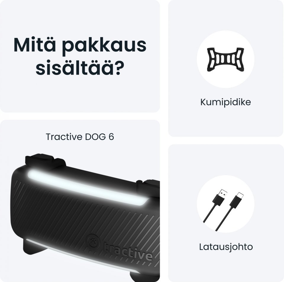 Tractiven koira-GPS kertoo, paljonko koirasi liikkuu, nukkuu ja haukkuu. Voit asettaa aktiivisuustavoitteita, tarkistaa hyvinvointipisteet ja vertailla kamuasi muihin rotuihin.