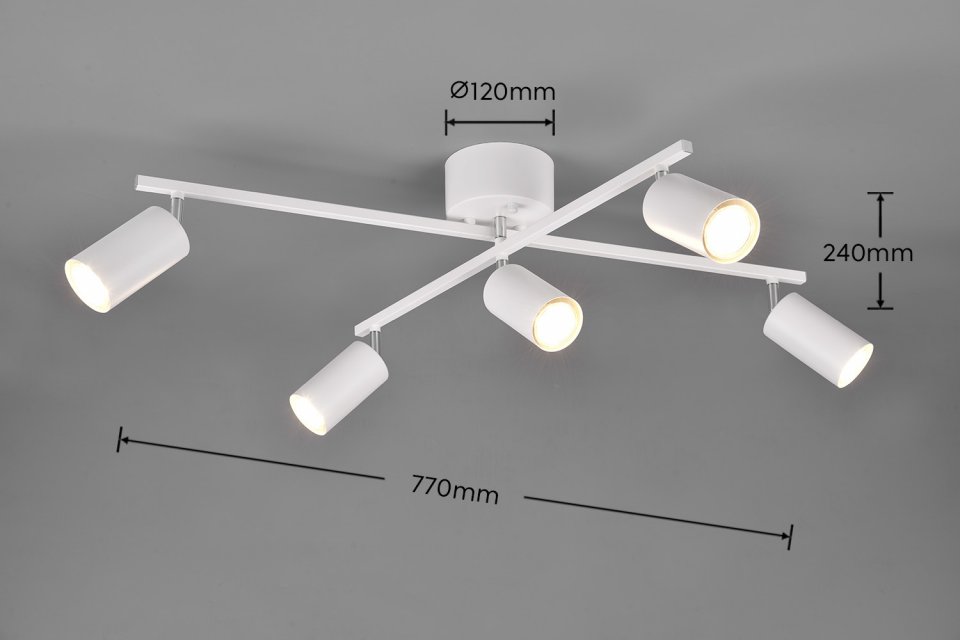 Trio Marlina on 5-osainen spottivalaisin, jossa spottien kohdistusta on mahdollista säätää. Kohdistettavuutensa ansiosta valaisin soveltuu erinomaisesti tuomaan yleisvaloa eteiseen, olohuoneeseen ja keittiöön. Valaisimen runko on metallia ja siinä on asennusta helpottava koukkukiinnitys. Valaisimeen sopii GU10-kantaiset polttimot.