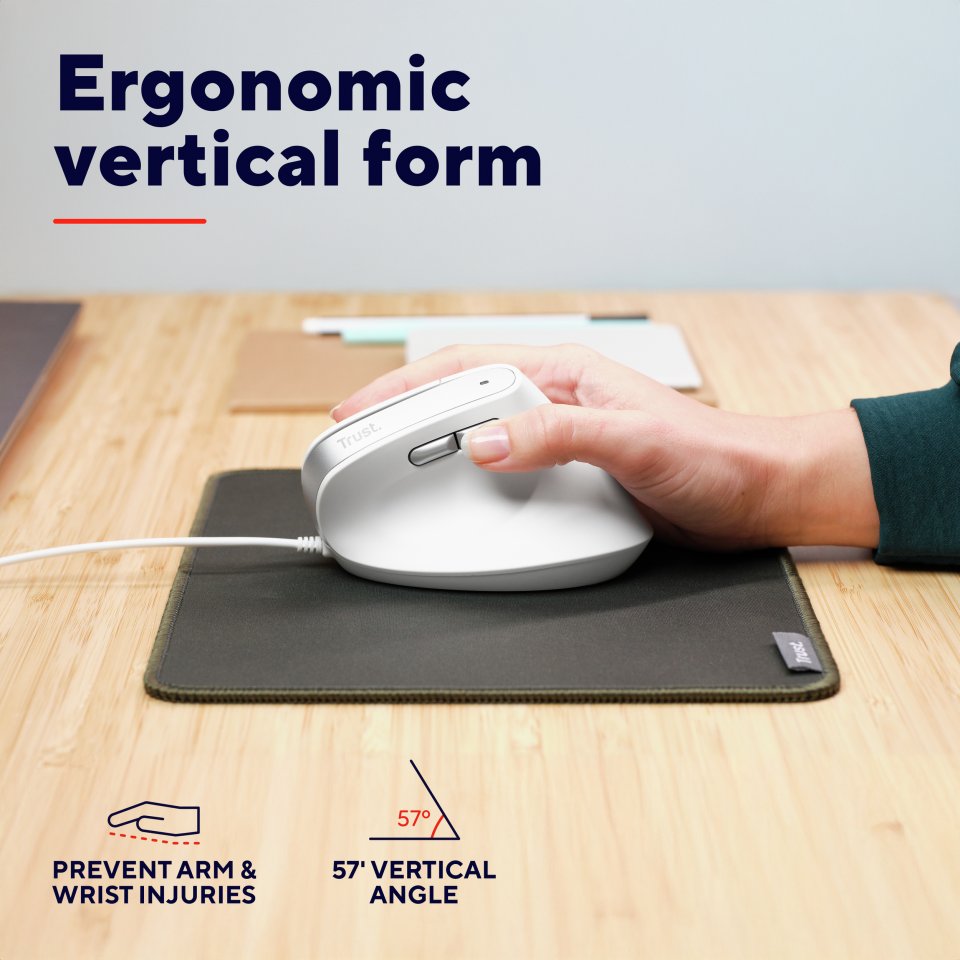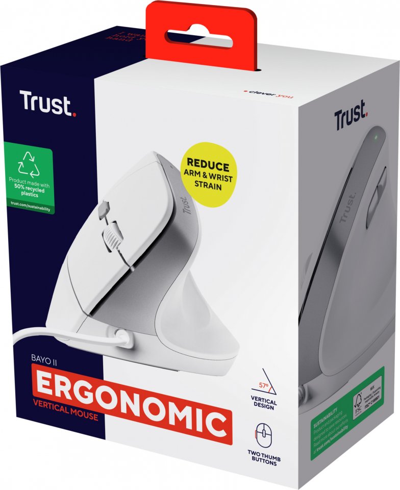 Trust Bayo II Ergonomic Mouse on täydellinen valinta niille, jotka haluavat ehkäistä ranteen rasitusta ja lisätä käyttömukavuutta pitkien työskentelyjaksojen aikana.