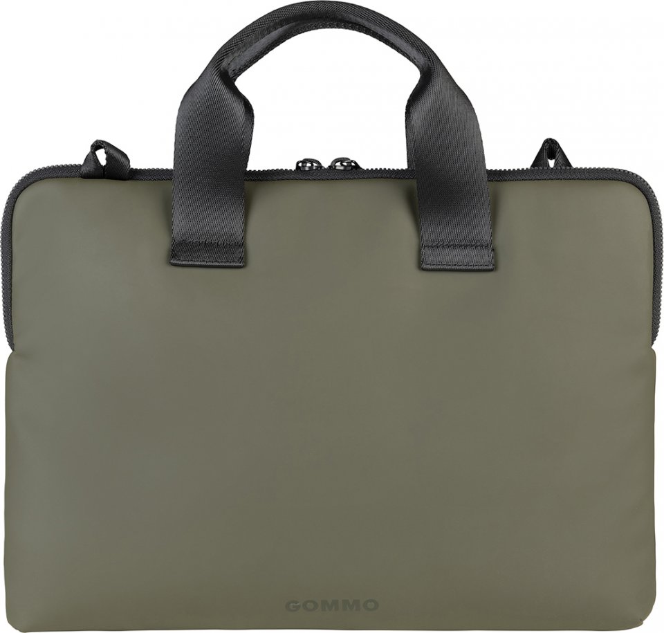 Gommo tuotteet on valmistettu kierrätysmuovista ja sille on ominaista minimalistinen muotoilu. Muotoilua leimaa pehmeät linjat ja näyttävät värit. Vedenpitävässä materiaalissa on mattapintainen viimeistely, joka antaa kokoelmalle erityisen, ainutlaatuisen ilmeen. Vedenpitävä, kumimateriaalista valmistettu laukku kannettaville tietokoneille ja MacBookeille. Gommo-laukussa on yksi pehmustettu lokero, jossa on liukumattomat kulmaläpät, sekä käytännöllinen ulkotasku tarvikkeille. Laukussa on irroitettava olkahihna ja kahvat. Tätä ohutta laukkua voi käyttää suojataskuna ja kuljettaa sitä repussa tai laukussa.