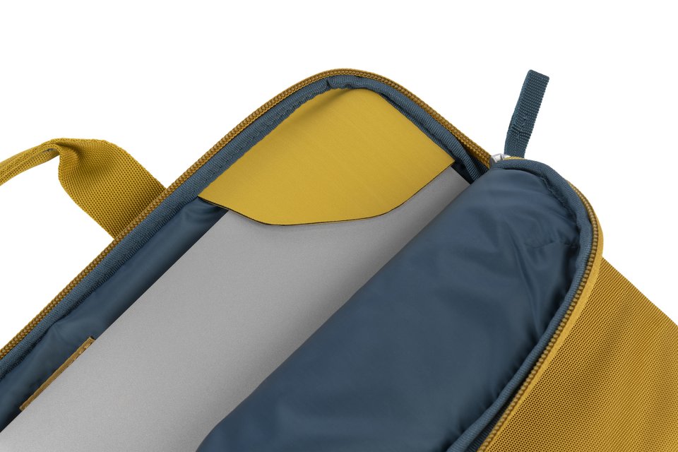 Laukussa on neopreenillä vahvistetut kulmat ja pehmustettu sisätila, joka pitää läppärin paikoillaan ja suojaa iskuilta. Yksi pääosasto riittää hyvin kannettavan ja tarvittavien lisätarvikkeiden säilytykseen.