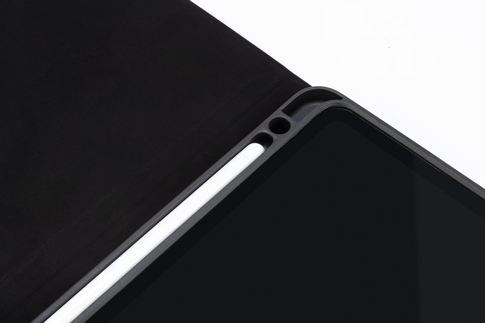 Tucano Up Plus suojaa tablettia tehokkaasti iskuilta ja naarmulta, jonka lisäksi kotelon kansi taipuu moneen eri katselu- ja kirjoitusasentoon. Tabletti pysyy suojakotelossa napakasti pakoillaan jämäkän takakuoren ansiosta. Kotelon selkäpuolella on aukko kameralle, ja kaikki tabletin näppäimet ja toiminnot ovat käytettävissä kotelon kanssa. Integroitu kynäpidike Apple Pencilille.