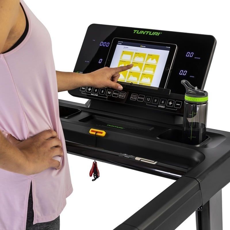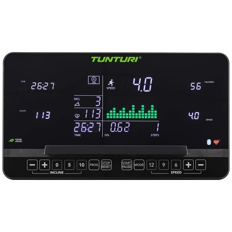 Jooksvari konsool ühendab LED-indikaatorid 10-tolise LCD-ekraaniga, mis kuvab selgesti olulisi treeningandmeid, nagu aeg, vahemaa, kaloreed, pulss ja kallak. See pakub 44 ettemääratud treeningprogrammi, et mitmekesistada jooksuharjutusi. Bluetooth-ühendus võimaldab ühendada jooksvari populaarsete välisrakendustega, nagu Tunturi Routes, Zwift ja Kinomap, interaktiivsete treeningkogemuste jaoks.