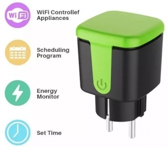 Tuya PE01E -etäohjattava pistorasia virrankulutuksen mittauksella, IP44. Sääsuojattu kodin langattomaan WiFi-verkkoon liitettävä älypistorasia sähkölaitteiden etäohjaukseen ja laitteiden virrankulutuksen mittaukseen. Amazon Alexa ja Google Assistant yhteensopiva.