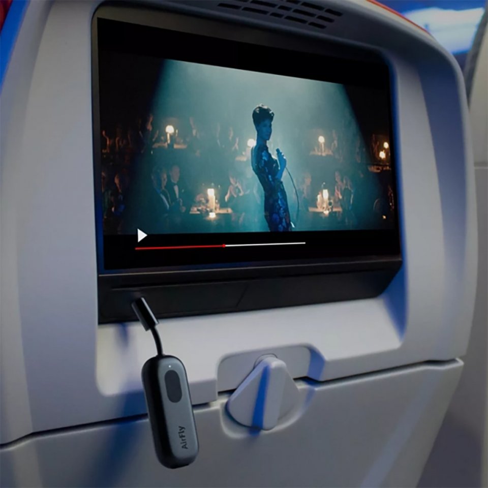 Oletko elokuvan tunnelmissa, kun olet liikkeellä? AirFly Pron avulla kaksi henkilöä voi kuunnella lennon aikana elokuvaa tai ohjelmaa MacBookilla tai iPadilla. Se on kuin langaton kuulokkeiden jakaja, joka tekee jaetusta äänikokemuksesta vaivatonta ja mukavaa.