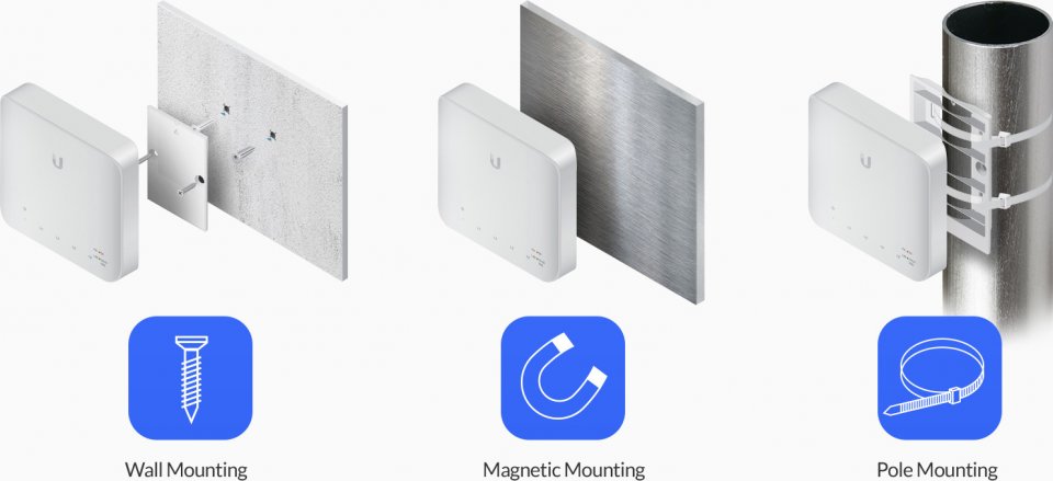 • Ei sisällä virtalähdettä. Suoisitellut virtalähteet. Myydään erikseen: USW-24-PoE, USW-Pro-24-PoE, PoE Injector, POE-50-60W-WH or POE-50-60W