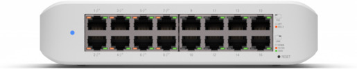 Unifi USW-Lite-16-PoE on hallita Layer 2 kytkin. Laitteessa on kuusitoista gigabit ethernet porttia, joista kahdeksassa on 802.3at PoE+ tuki