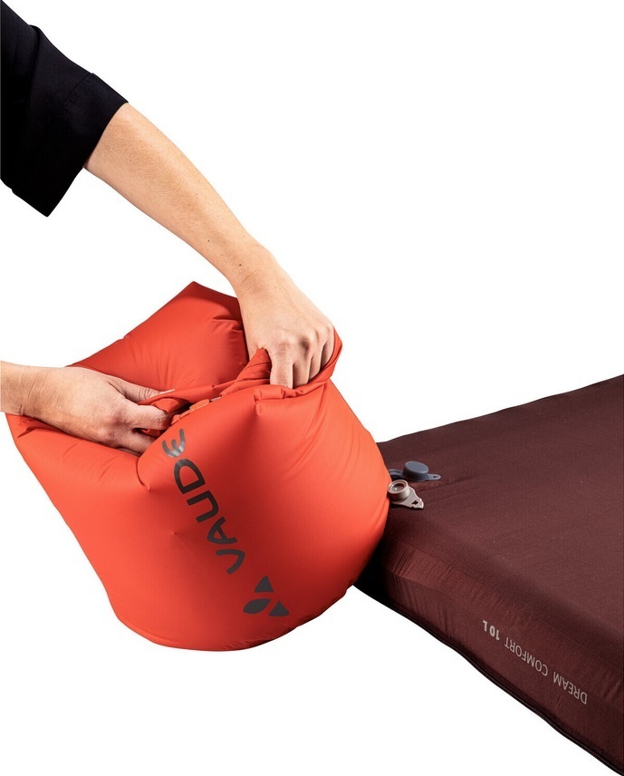 Vaude Pump Sack on erittäin kevyt ja kompakti pumppupussi, jolla täytät makuualustan nopeasti ja helposti, ilman kosteaa hengitysilmaa. Pisaranmuotoinen pussi täyttyy vaivattomasti korvausilmasta noin 20 cm etäisyydeltä kevyesti hönkäisemällä. Pussilla täyttämällä makuualustan sisus pysyy kuivana ja puhtaana, mikä pidentää alustan käyttöikää merkittävästi.