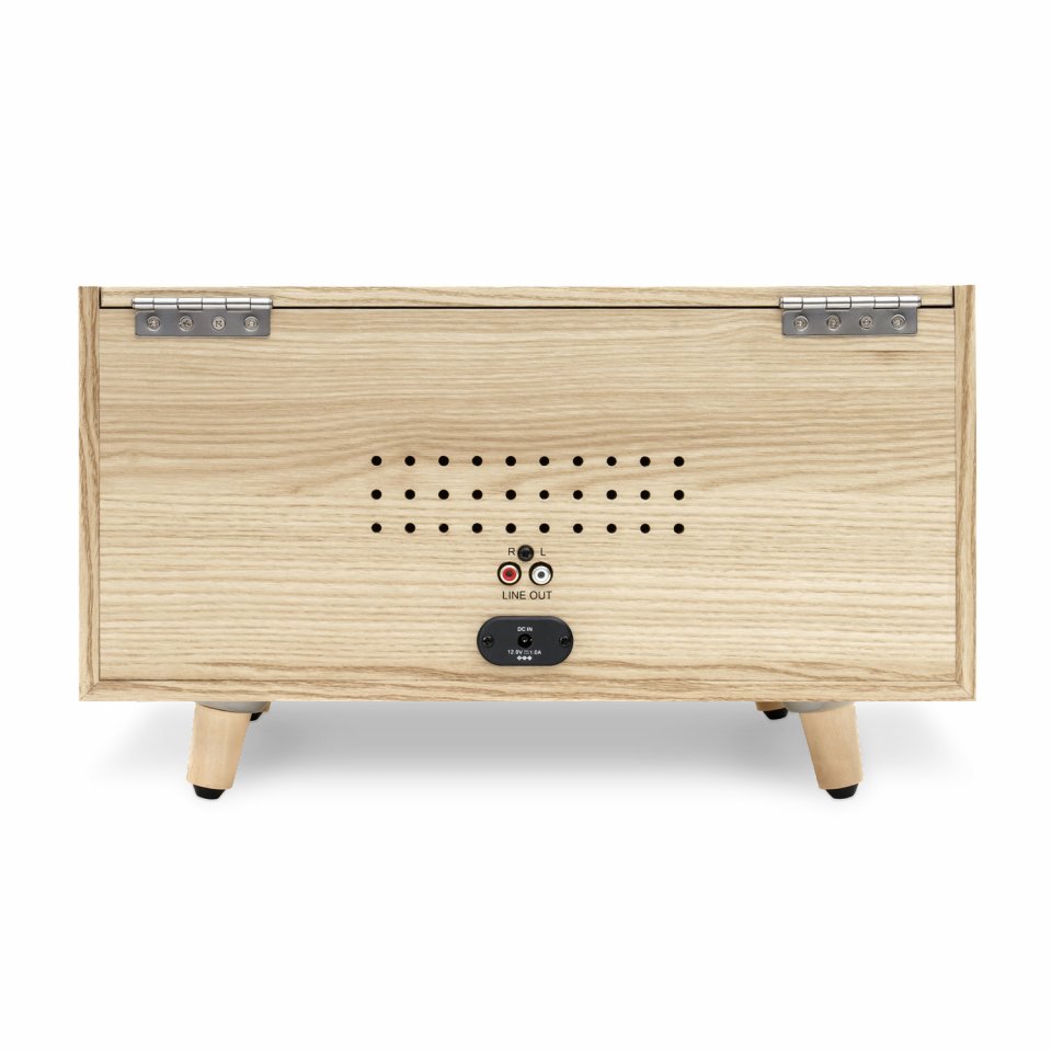 Keskellä sijaitseva valintanuppi tekee käytöstä yksinkertaista ja intuitiivista. Puinen kotelo ja Mid-century-muotoilu tuovat lämpöä ja tyyliä mihin tahansa tilaan.