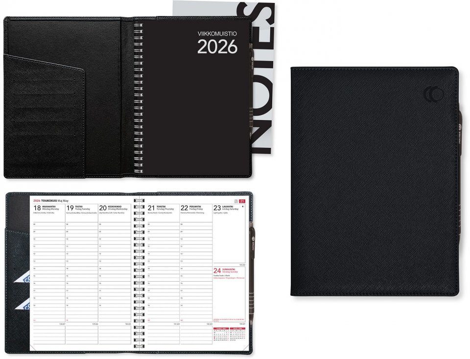 Viikkomuistio Plus 2026, musta