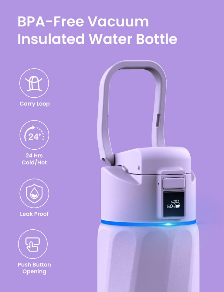 Älypullo yhdistyy kätevästi WaterH-sovellukseen, Apple Healthiin, Apple Watchiin ja Fitbitiin. Voit seurata vedenjuontiasi ja saada yksityiskohtaista tietoa nesteytyksestäsi. Sovellus lähettää myös push-ilmoituksia, jotka muistuttavat sinua juomaan vettä päivän aikana.