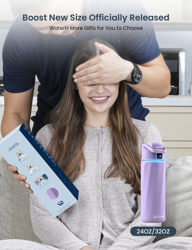 WaterH Boost on älyjuomapullo, joka auttaa sinua pysymään nesteytettynä koko päivän. Pullossa on LED-kosketusnäyttö ja 360 asteen LED-valo, jotka näyttävät juodun nesteen määrän ja muistuttavat sinua juomaan säännöllisesti.