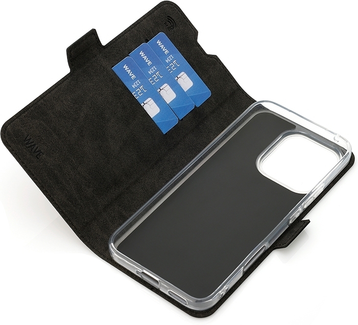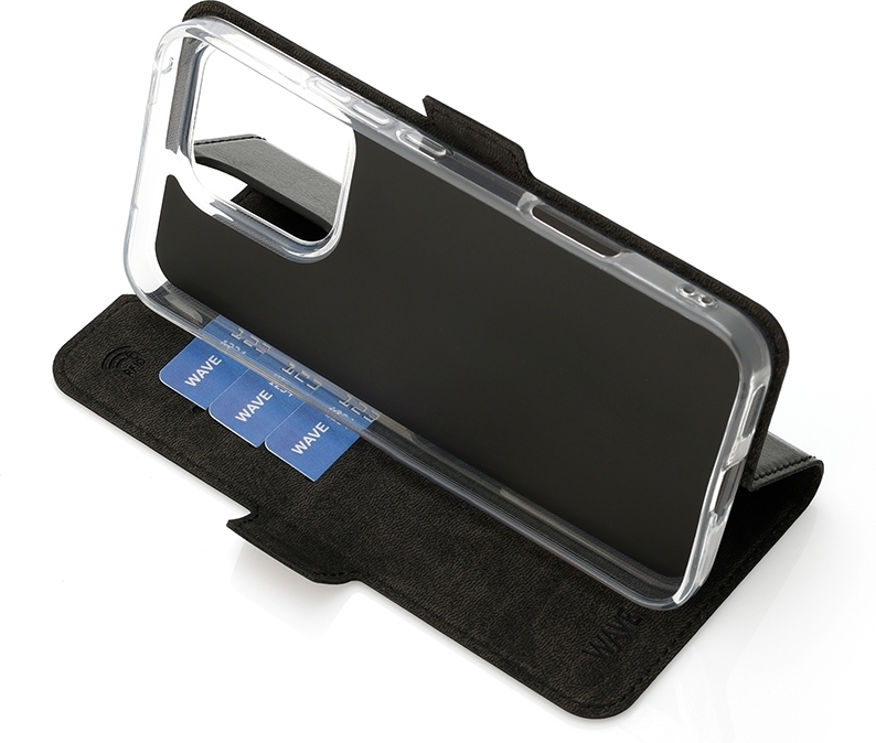 Wave Book Case ei ole pelkkä suojakotelo, vaan myös käytännöllinen lisävaruste. Kannen sisäpuolella on kolme RFID-suojattua korttipaikkaa, joissa tärkeät kortit pysyvät turvassa ja helposti saatavilla. Kannen magneettinen kiinnitys pitää suojakotelon tiukasti kiinni, joten puhelin pysyy turvassa ja suojassa tilanteessa kuin tilanteessa.