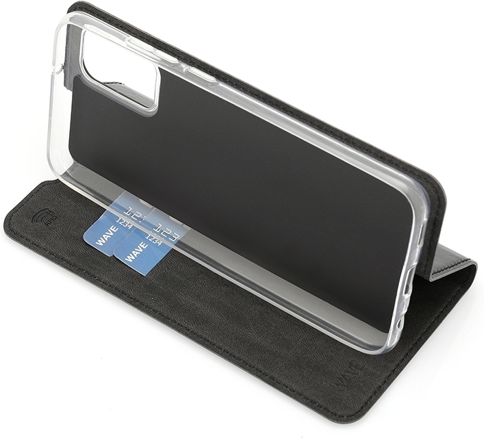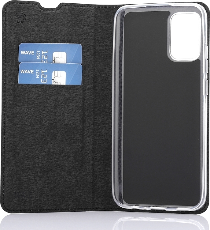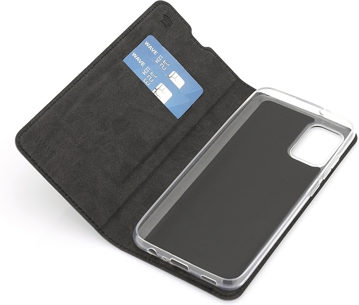 Wave BookCase -suojakotelo, Samsung Galaxy A02s, musta