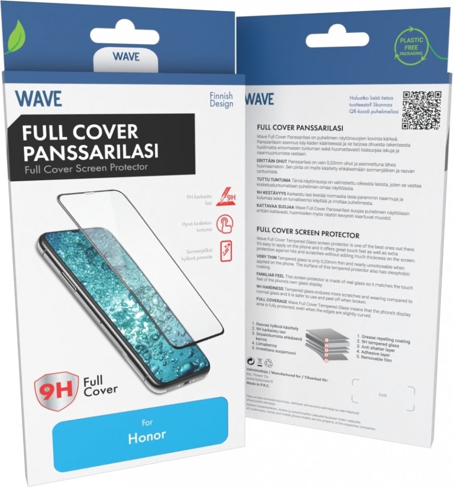 Wave Full Cover -panssarilasi tarjoaa kovan luokan suojaa puhelimellesi. Ohut, karkaistusta lasista valmistettu suoja on helppo asentaa, ja se tarjoaa erinomaisen tuntuman ja lisäsuojaa iskuja ja naarmuuntumista vastaan.