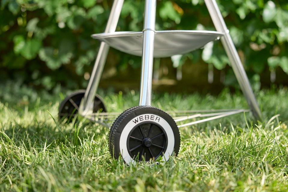 Grillissä on kätevät välinekoukut kahvassa, joihin voi ripustaa grillaustarvikkeet käden ulottuville. Kannen voi myös ripustaa grillin alaosaan koukulla grillauksen ajaksi. Lisäksi grillissä on alhaalla ritilähylly lisätilaa varten ja kolme ruosteenkestävää alumiinijalkaa, jotka takaavat tukevan ja kestävän rakenteen.