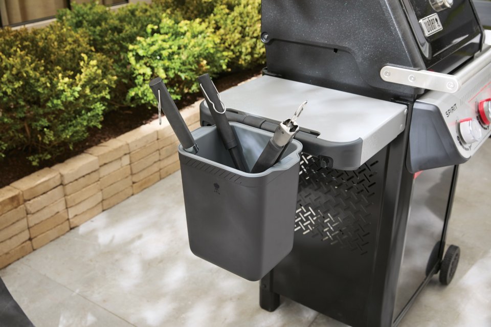Weber Works Tool Holster Snapon on suunniteltu siten, että se ei vie tilaa sivutasolta, vaan hyödyntää sivukiskon tehokkaasti. Tämä mahdollistaa enemmän tilaa valmisteluun ja tarjoiluun grillin läheisyydessä.